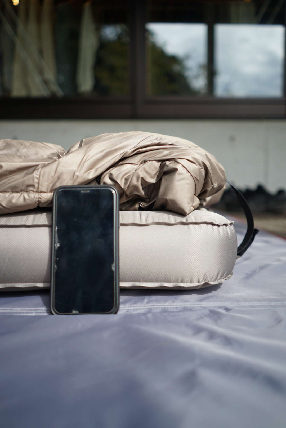 ダウンの掛け布団につきましては、ベルトでマットとオフトンを固定できるようになっているためずれて寒くなる心配がありません!